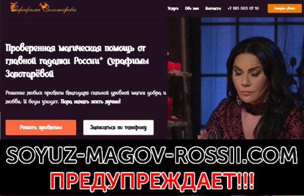 Гадалка Серафима Золотарева (+7 985 005 07 10)оказалась шарлатанкой. Читаем отзыв пострадавшей женщины. Я всегда считала цыган самыми лучшими колдунами, но это не так, потому что они ещё и опасны. Доказано! Я познакомилась с гадалкой Серафимой Золотаревой на сайте: serafimazolotareva.ru. Там был целый список контактов, но сейчас там только номер +7 985 005 07 10. Шарлатанка называет себя «Главной гадалкой России». Разумеется этот титул она сама себе придумала, что бы завлечь в свои мошеннические сети как можно больше людей.